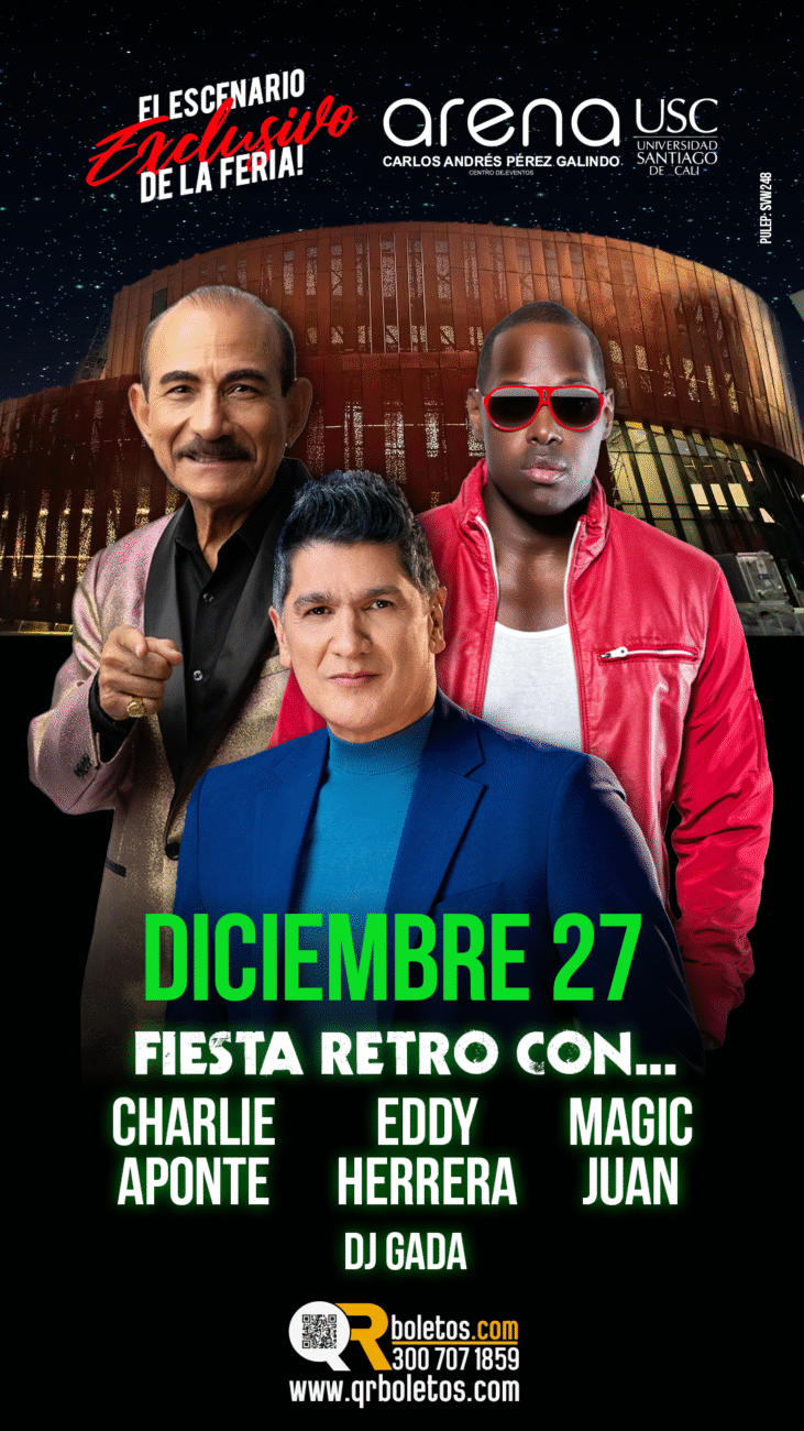 El 27 de diciembre, la Arena USC cambiará de época para convertirse en una gran pista retro. La nostalgia se apoderará del escenario con Charlie Aponte, histórico vocalista de El Gran Combo, cuya presencia es sinónimo de salsa eterna. Eddy Herrera pondrá el toque merenguero que marcó décadas de rumba, mientras Magic Juan traerá la explosión urbana que definió los años noventa y dos mil. DJ Gaga será el encargado de unir generaciones con mezclas que invitan a cantar y bailar sin reservas, en una noche pensada para quienes crecieron con estos sonidos y hoy quieren revivirlos con la misma intensidad.