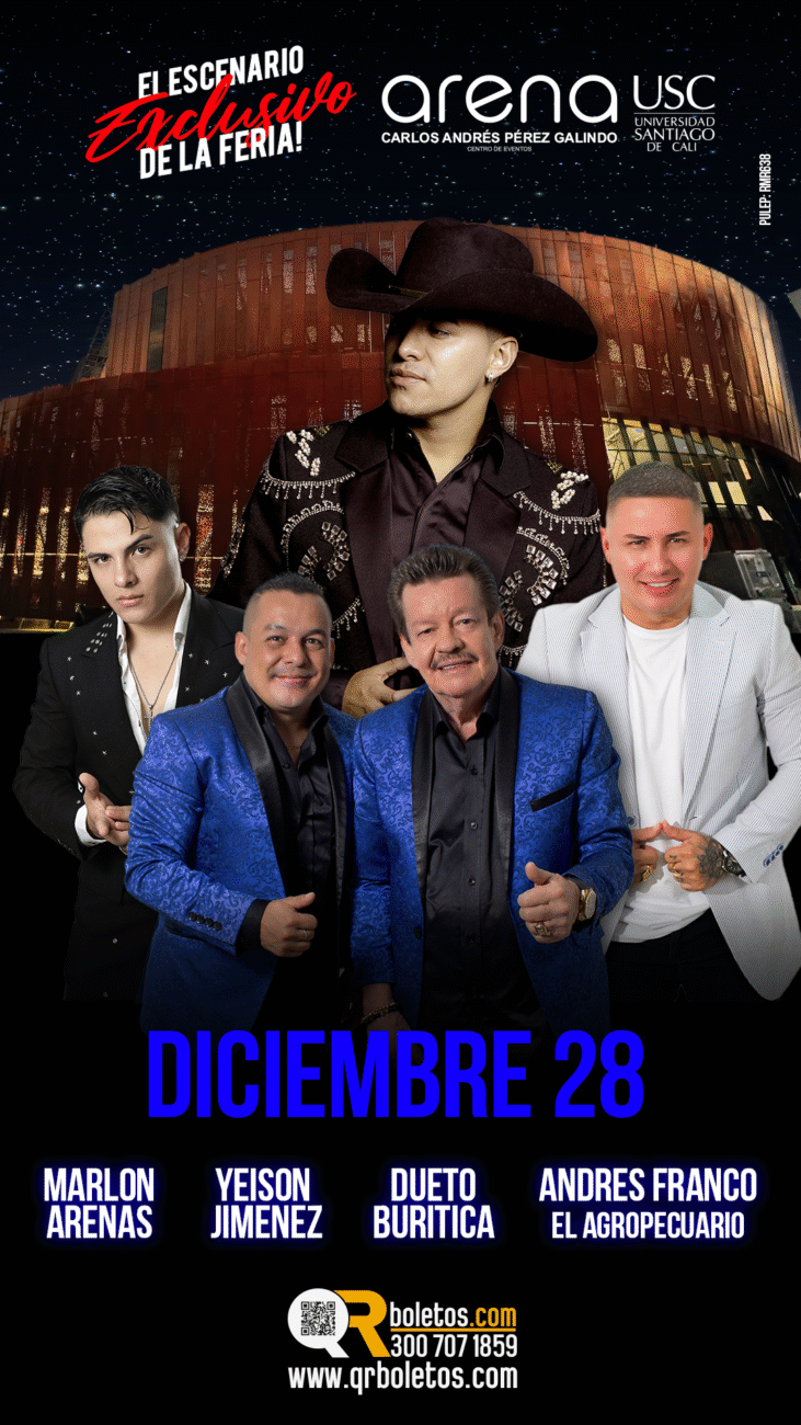 Cinco noches, más de 30 artistas y una sola certeza: la Feria de Cali se vivirá con intensidad total en la Arena USC, donde la música, la emoción y la identidad caleña se encontrarán del 26 al 30 de diciembre.